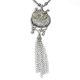Hot Deals Ladies Silver 31-Inch Lovely Citrine & White Crystal Eye Owl Tassel Pendant Long Necklace