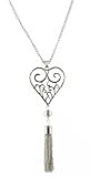 Necklace - N205 - Heart with Tassel Pendant ~ Silver Tone Features