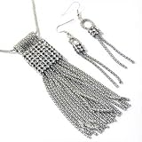 Hot Deals Silver with Clear Crystal Rhinestone Mesh Tassel Style Chain Necklace and Earring Set Fashion Jewelry