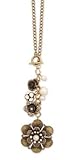 ZAD X-Long Multi-Flowers Charm Cluster Necklace on Antique Gold Toggle Chain Crystal & Pearl Accents Specification